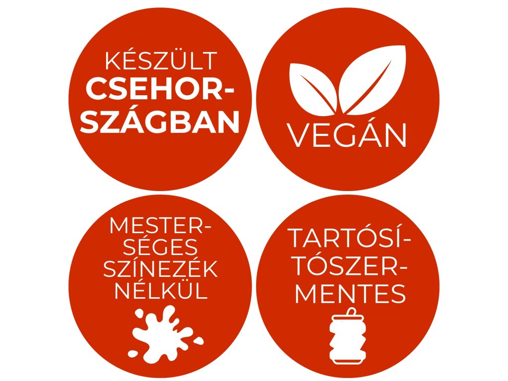 - Hozzáadott tartósítószerek, stabilizátorok, aromák és színezékek nélkül.
